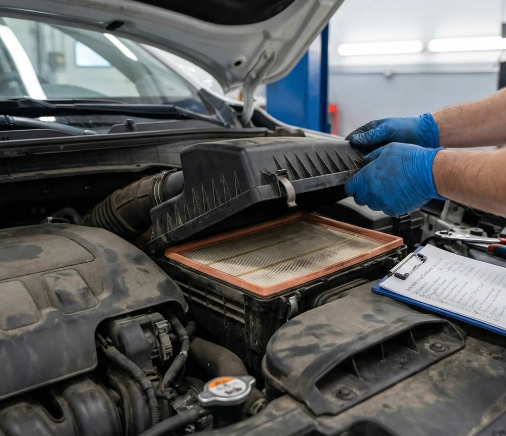 - Inspectie van het luchtfilter en brandstoffilter (vervangen indien nodig volgens schema).