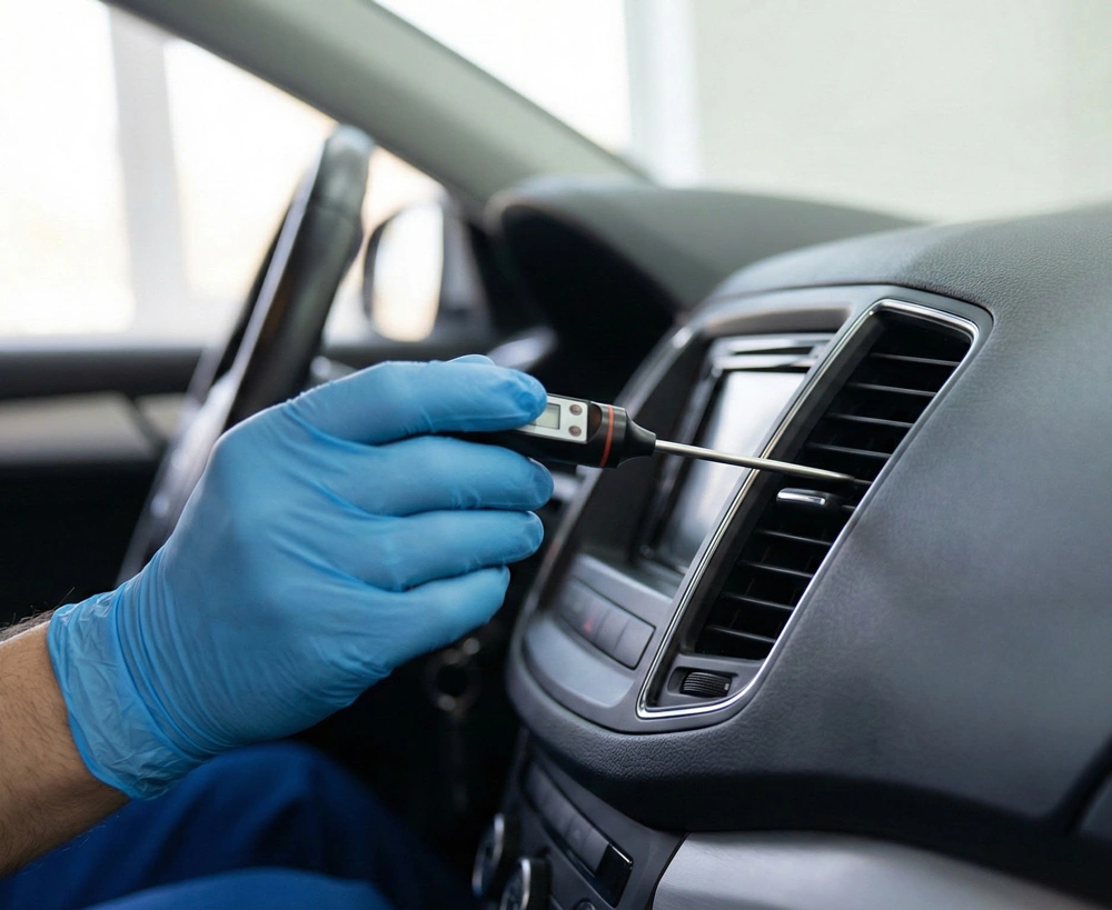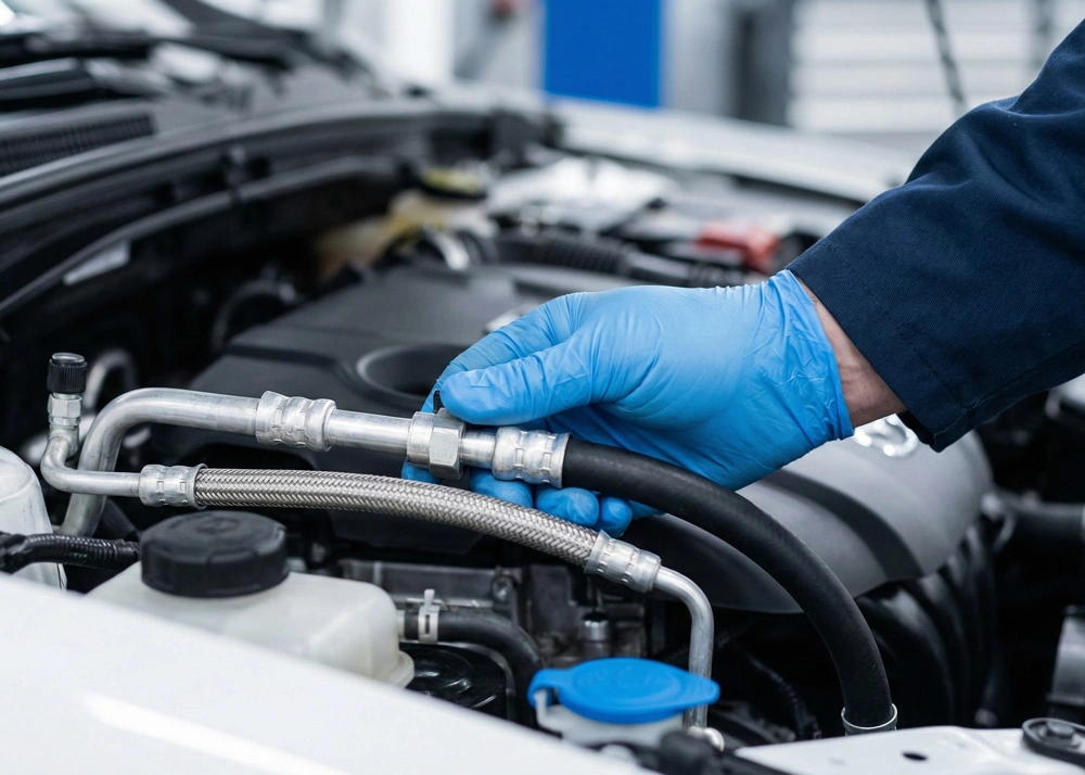 - Visuele inspectie: Wij kijken onder de motorkap naar de staat van de aandrijfriem, de condensor en de leidingen. Zien we zichtbare beschadigingen of lekkages?