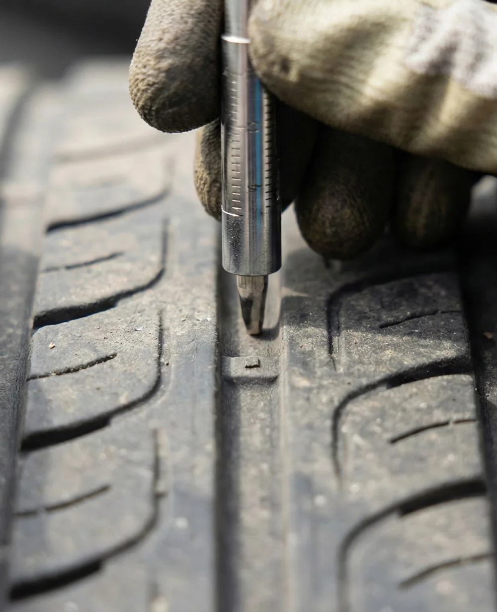 - Profiel: De wettelijke eis is minimaal 1,6 millimeter. Dit kunt u meten met een profielmeter, of kijk naar de slijtage-indicatoren (kleine blokjes rubber) in de hoofdgroeven van de band. Zitten deze gelijk met het loopvlak? Dan is de band versleten.